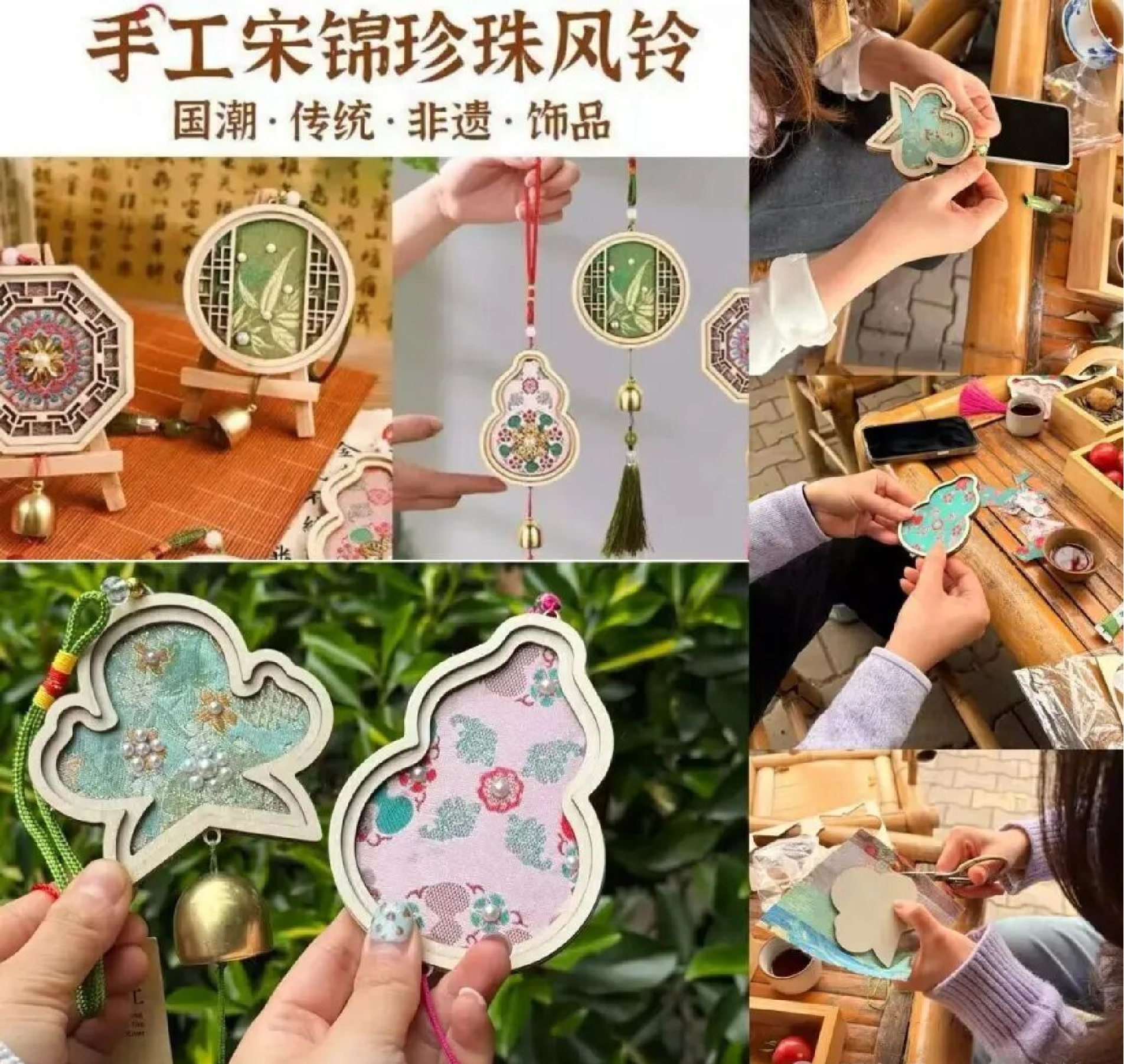 炭火温良,茶香氤氲。大家围坐一席,在袅袅茶烟中卸下疲惫,暂别严谨刻度,共赴春日茶约。茶香伴手作,匠心共芳华。在宋锦珍珠风铃DIY环节,大家化身“指尖匠人”,将千年宋锦的华美纹样与莹润的珍珠、清脆灵动的风铃精心搭配,制作出一枚枚独一无二,雅致灵动的春日信物。欢声笑语中,大家感受到团队的温暖,指尖灵动间,大家体会到传统的魅力。
